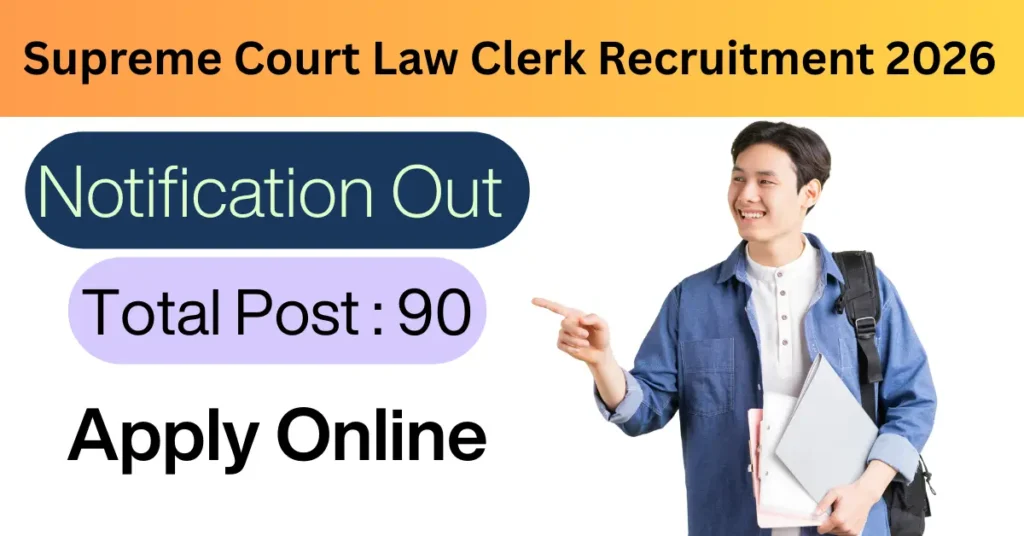 Supreme Court Law Clerk Recruitment 2026 : Supreme Court of India (SCI), New Delhi ने Law Clerk cum Research Associate Recruitment 2026 का आधिकारिक नोटिफिकेशन जारी कर दिया है। यह भर्ती उन कानून के छात्रों और युवाओं के लिए एक शानदार अवसर है जो भारत के सर्वोच्च न्यायालय में काम करने का सपना देखते हैं।